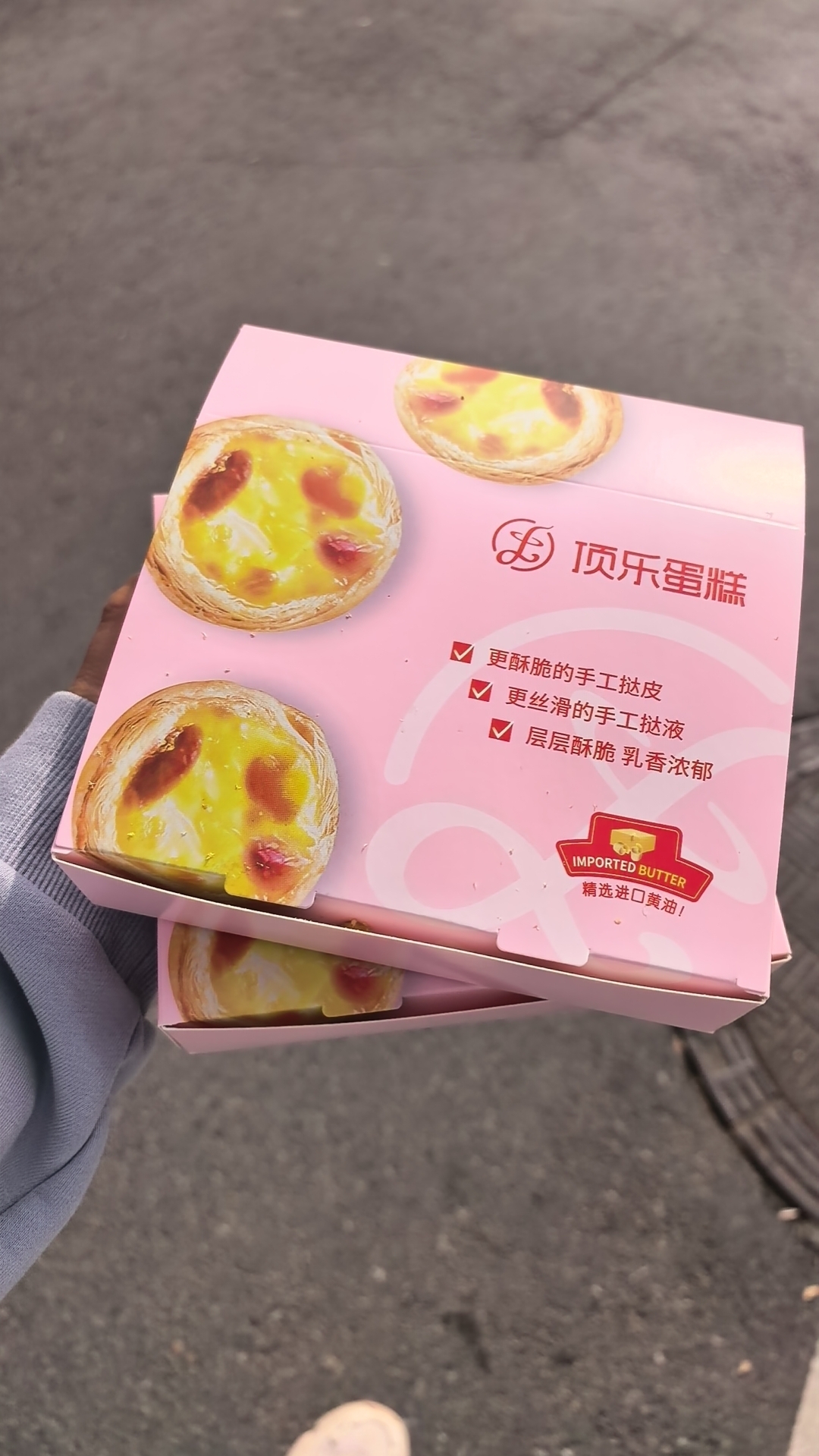 • 跟俺妹俩领了两盒蛋挞,儿子喜欢吃,明天再领
