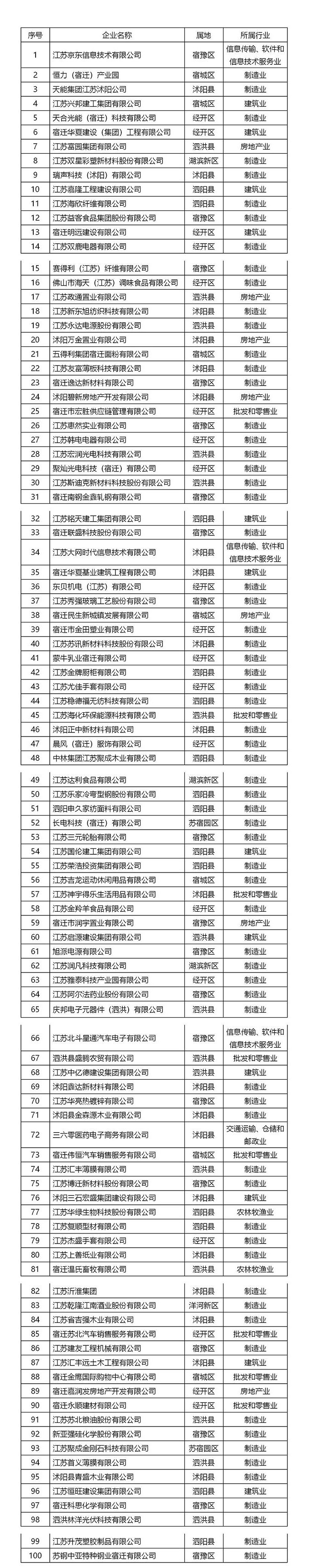 宿迁百强企业有这些: